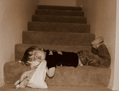 about an hour and a half ago the big kids started to giggle and say that Liam was asleep - "look"!!!